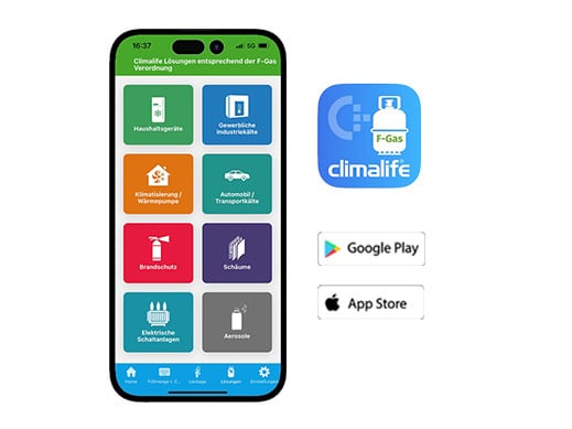 - Das Modul der Climalife-Lösungen entsprechend der F-Gas Verordnung, das über die bevorstehenden Verbote für neue oder bestehende Anlagen nach Anwendung informiert. Für jede Situation finden Fachleute eine Liste der auf dem Markt erhältlichen Produkten und die Empfehlungen von Climalife, die verschiedene Kriterien berücksichtigen (GWP, Sicherheit, Brennbarkeit, Verfügbarkeit, Energieeffizienz, …). Die Tabelle mit den Lösungen kann per E-Mail verschickt werden.