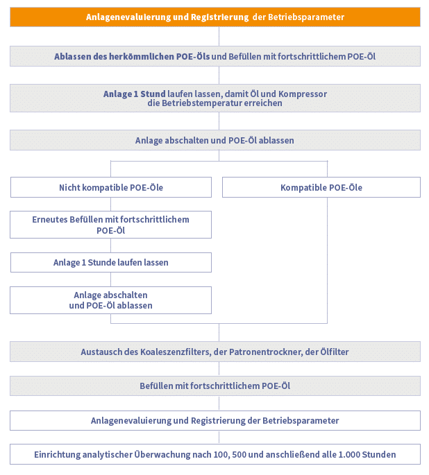 1. Umstellungsverfahren einer unter- oder transkritischen CO2-Anlage (R-744) mit POE-Öl hin zu einem POE-Öl modernster Technik Mobil SHC GargoyleTM Arctic 80 POE.