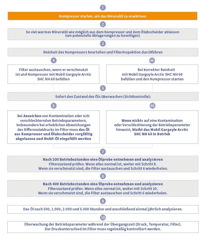 2. Umstellungsverfahren einer Ammoniakanlage die mit naphtalen- oder parafinhaltigen Mineralölen arbeitet auf das synthetische Öl Mobil Gargoyle Arctic SHCTM NH 68.