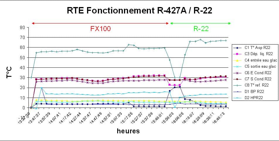 El R-417A, presentado como un fluido de transición eficaz, se probó durante tres meses en una de las unidades, pero no cumplía los requisitos de refrigeración por volumen, resultando más débil que el R-22. RTE recurrió entonces a Serge François, director de Aplicaciones Técnicas de Climalife, para que investigara su problema.