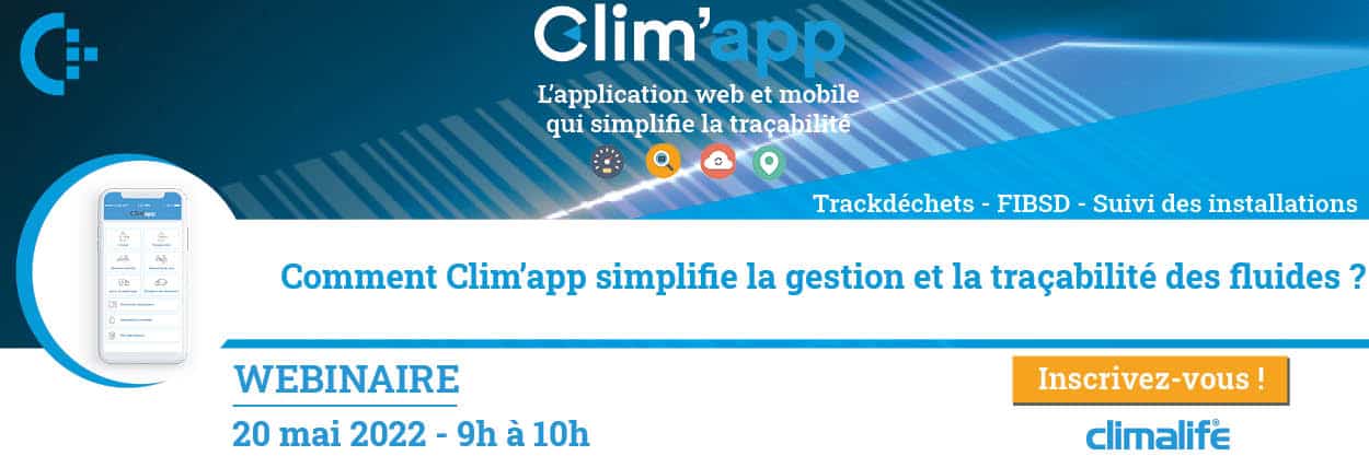 Le 20 mai de 9h00 à 10h, Climalife vous invite à une démonstration interactive de Clim’app pour vous éclairer sur les différentes fonctionnalités de cette application mobile et comprendre comment Clim’app peut simplifier le quotidien des professionnels du Froid, intégrant prochainement la connexion à Trackdéchets.
