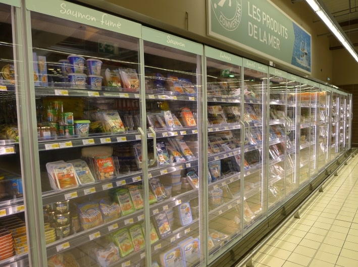 Les linéaires à porte n’auront pas besoin d’être vidés, le maintien de la température des meubles est assuré par des blocs de carboglace, mis en place dès la fermeture du magasin.
