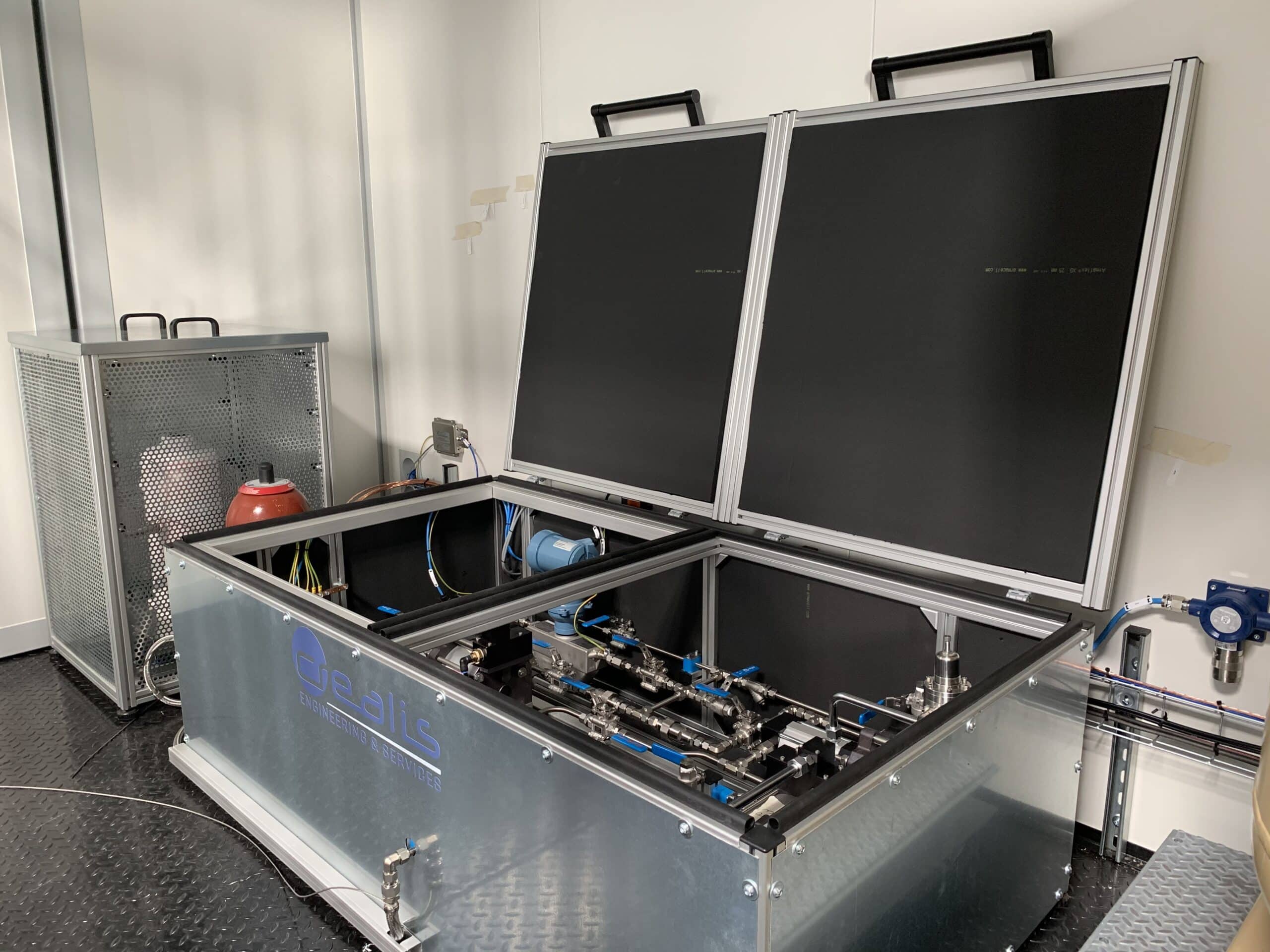 L’ensemble, réalisé dans un conteneur 20 pieds peut rapidement être installé chez le client, être déplacé en cas de remodelling de l’usine. Le process de contrôle-commande garantit une alimentation du poste de charge client à pression et débit constant. L’interface IHM et les connectiques de raccordement sont adaptés en fonction des besoins du client.