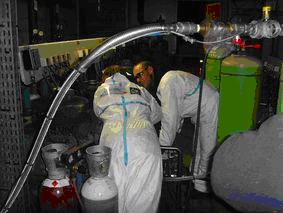 To facilitate the transfer and decrease the pressure in the recuperation bottles, they were stored in a cold room before and during the operation.
