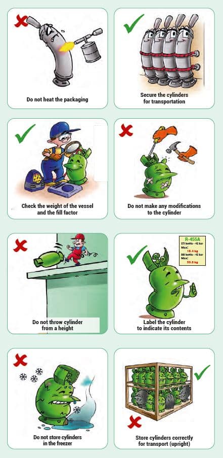 The guidelines for the use of transportable pressure equipment are set out in the European Directive 2014/68 EU and the ADR (Agreement on the Transport of Dangerous Goods), chapter P200. The pressurised vessels used in the packaging, recovery or transfer of refrigerants, propellants, extinguishing agents and other liquefied gases are designed to ensure the safety of equipment and people. However, it is important to follow good practice.