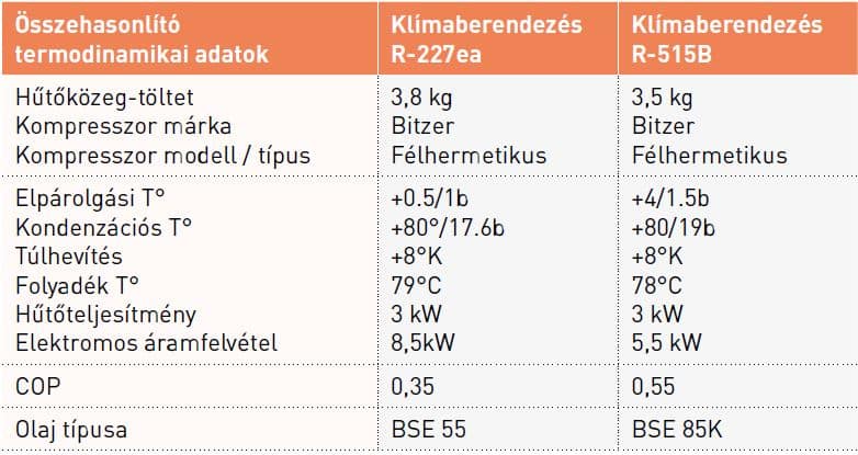 → Az R-515B megoldás előnye, hogy magas környezeti hőmérsékleten képes működni magas kritikus hőmérsékletének köszönhetően.