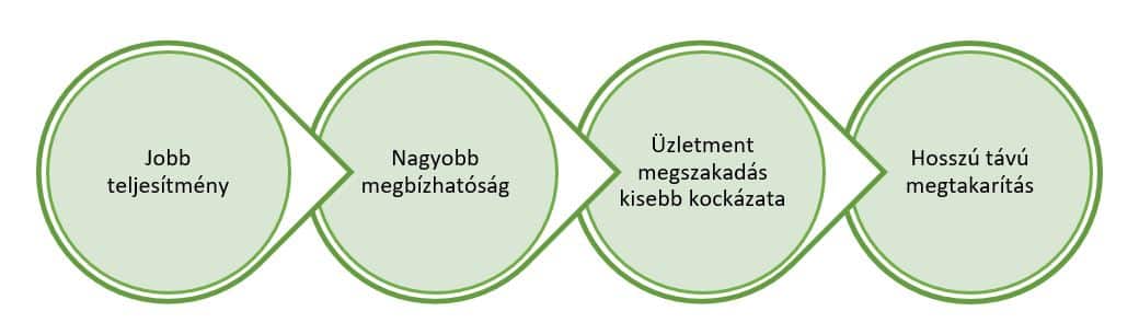 A Pitkin & Ruddock Ipswich szerviz- és karbantartási adminisztrátor, Debra Low szerint „A tervezett, megelőző karbantartások minimálisra csökkentik az üzletmenet megszakadásának kockázatát azáltal, hogy felfedik a közelgő problémákat, még mielőtt ezek költségessé válnának. Segítenek az energiahatékonyság és a rendszer optimalizálásának javításában, a jobb teljesítmény elérésében, valamint annak biztosításában, hogy az üvegházhatást okozó gázok emisszióját a szabályok szerint a lehető legalacsonyabbra csökkentsük. A végfelhasználók üzleti előnyei közé tartozik a nagyobb megbízhatóság, az alacsonyabb működési költségek, a gyorsabb megtérülés és a potenciálisan hosszabb élettartam, valamint a kevesebb szén-dioxid-kibocsátás.“