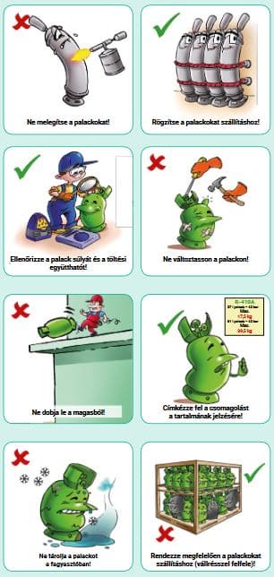 - Tartsa be a csomagoláson feltüntetett hőmérsékleti tartományt! Ugyanakkor tilos a palackokat nulla fok alatti hőmérsékleten tárolni, ami meggyengítheti a palackok acélját.