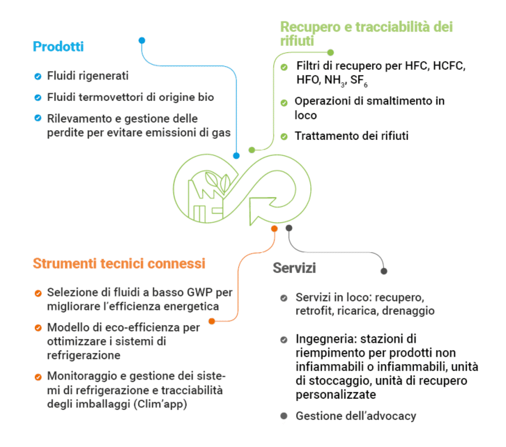 Pioniere della refrigerazione responsabile con l’implementazione del recupero e della bonifica dei gas a effetto serra flurorato, il concetto di economia circolare è l’essenza del nostro marchio.