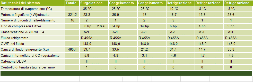 Le choix du R-455A présente en outre l’avantage de réduire le nombre de contrôles d’étanchéité à une fois par an pour les deux surgélateurs et n’est pas nécessaire pour les autres installations frigorifiques qui ont une charge inférieure à 5 tonnes équivalent CO2.