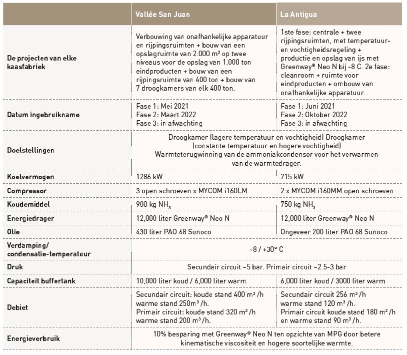 De installateur bestudeerde de hervormingsplannen voor elk van de kaasmakerijen met de nieuw te bouwen installaties. Er werd besloten een indirect ammoniaksysteem te installeren met een traditionele MPG. Door de moeilijke economische situatie waren er echter problemen met de beschikbaarheid van de leverancier van monopropyleenglycol en sterk stijgende MPG-prijzen. Toen introduceerde Climalife het biologische alternatief Greenway® Neo N, met zijn nieuwe NSF HT1 formule.