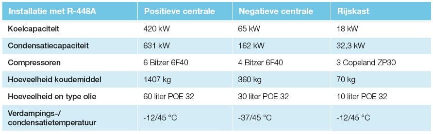 De centrale voor positieve koude, die bestaat uit 6 semi-hermetische Bitzer 6F-40 compressoren, was gevuld met 1300 kg R-404A koelvloeistof. De productie negatieve koude werd verzorgd door een centrale van 4 compressoren (350 kg R-404A), gelijkaardig aan die van de positieve centrale. De installatie bevat ook 3 Copeland ZP30 scroll compressoren die initieel op R-404A werkten en die de rijskasten voeden. Sinds enkele jaren heeft Cyril Coulange het onderhoud aan deze installatie toevertrouwd aan Nicolas Charnay, diensthoofd onderhoud bij IFC.