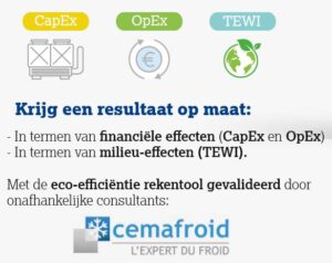Deze rekentool ondersteunt u bij het kiezen van een nieuw koelsysteem voor uw buurtwinkels, supermarkten, koelruimtes, etc. De tool werd ontwikkeld door Honeywell en gevalideerd door het Cemafroid instituut en houdt rekening met zowel financiële (CAPEX en OPEX) als milieucriteria (TEWI) op de lange termijn.