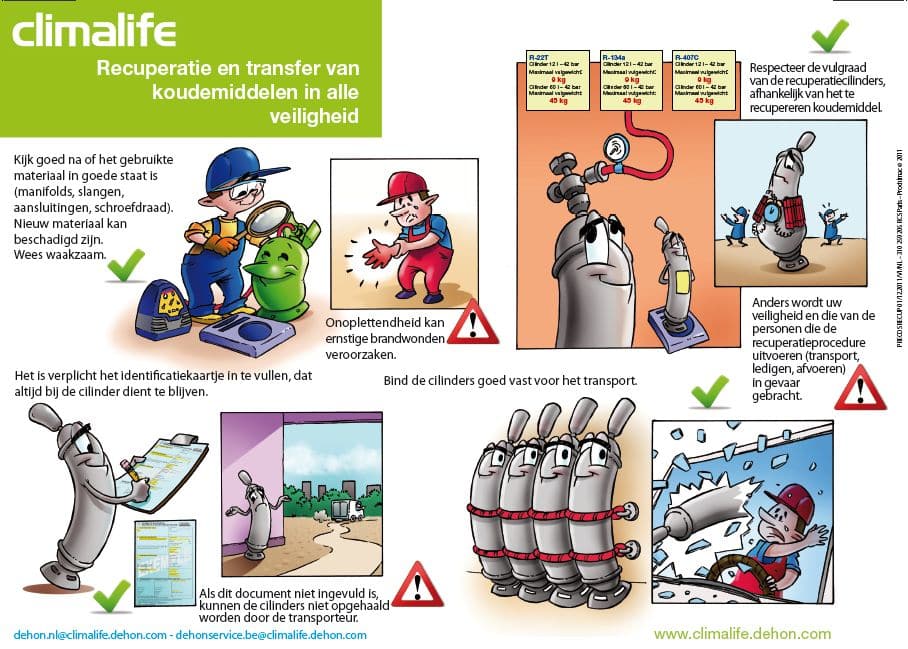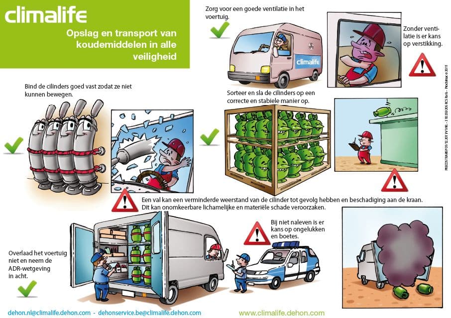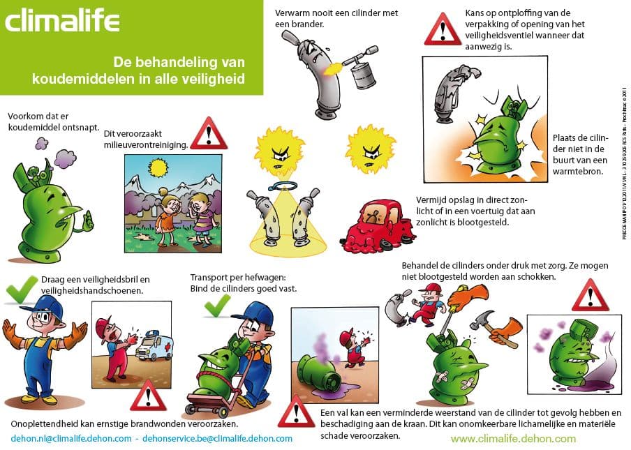 Met het doel om verder te werken aan preventie en bewustwording, heeft Climalife stripverhalen gemaakt die wijzen op essentiële voorzorgsmaatregelen bij het gebruik van koudemiddelen. Deze stripverhalen zijn bestemd voor alle professionele spelers in de branche en worden gesplitst in drie thema’s: terugwinning en tijdelijke opslag, gebruik, en transport en opslag.