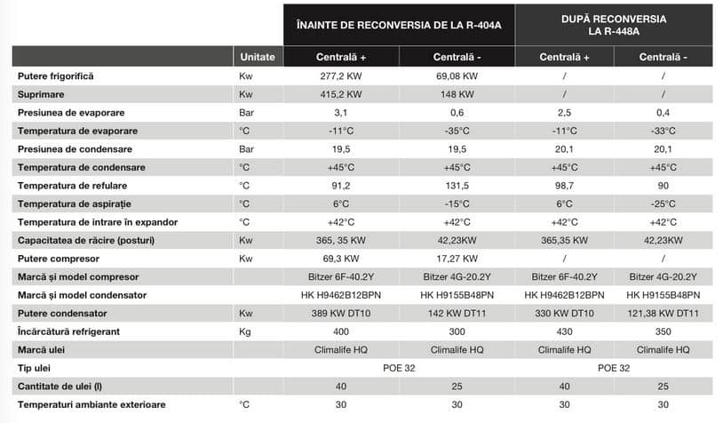 Corentin Bonnec & Guillaume Allard afirmă că „nu au întâlnit nici o problemă deosebită la această conversie la R-448A”. Reglajele sistemului de regulatoare Danfoss al instalaţiei sunt