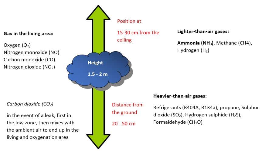 Pentru gazele explozive sau periculoase, pragul de detectare este stabilit la mai puțin de 20% din limita inferioară de inflamabilitate, iar detectoarele de amoniac trebuie să declanșeze ventilarea, o alarmă și să deconecteze alimentarea externă cu energie electrică.
