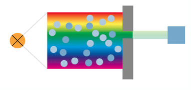 Senzorul este format dintr-o sursă de lumină, un filtru anti-interferență, un detector și o cameră în care gazul țintă este difuzat după ce a fost aspirat. Numai culoarea verde a fasciculului de lumină este filtrată și analizată prin măsurarea intensității sale. Dacă este prezent un gaz, culoarea verde a radiației luminoase este redusă cu o cantitate măsurabilă.