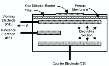 Senzorul este format dintr-un electrod de lucru, un contraelectrod, un electrod de referință și un electrolit. Senzorii electrochimici funcționează ca bateriile. Când gazul țintă este prezent, o reacție chimică pe electrodul de lucru generează o mică sarcină electrică între doi electrozi, proporțională cu concentrația de gaz.