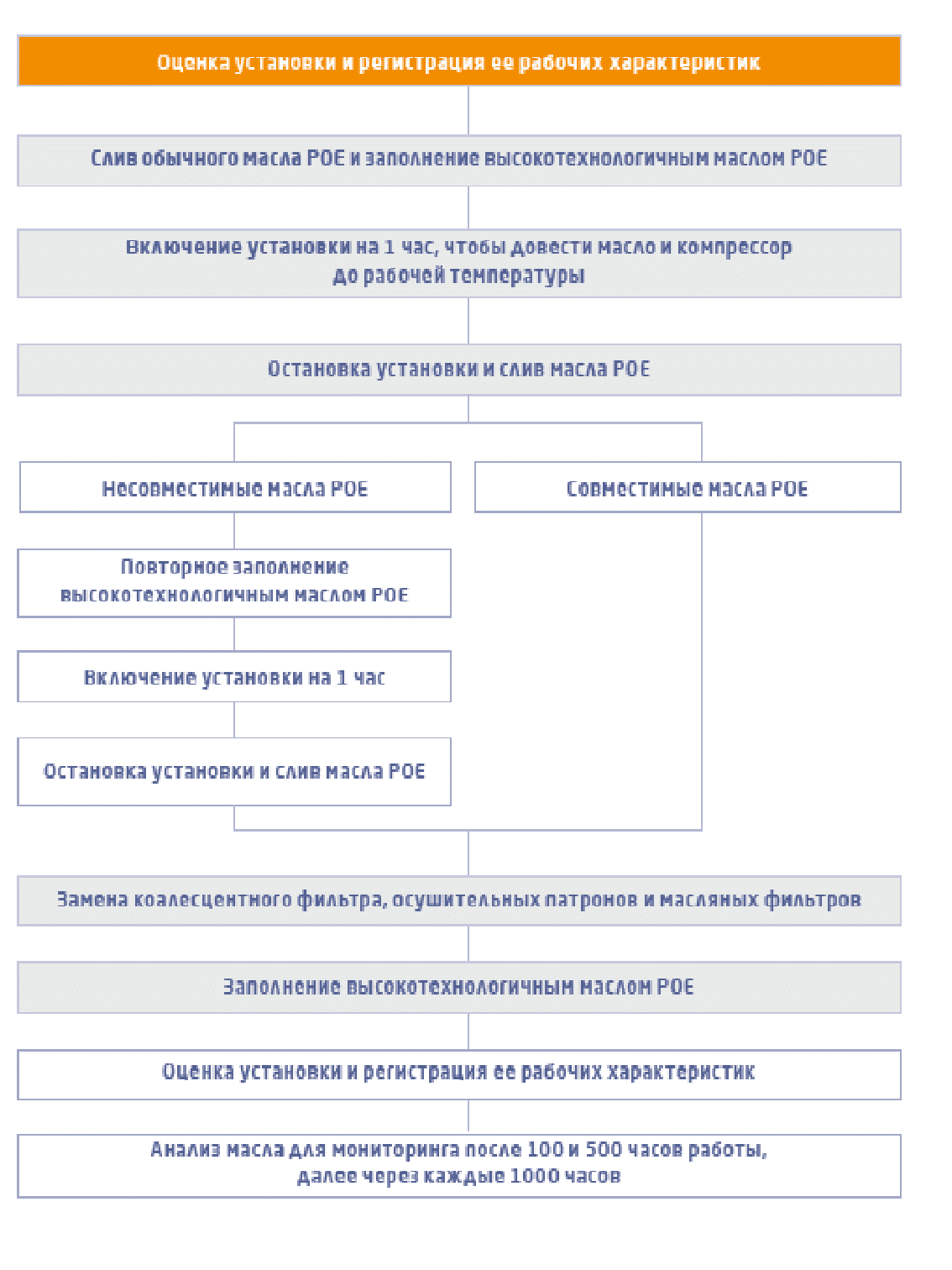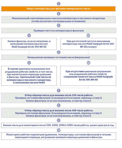 2.Процедура перевода установки на аммиаке с нафтеновыми или парафиновыми минеральными маслами на масло Mobil Gargoyle Arctic SHC NH 68