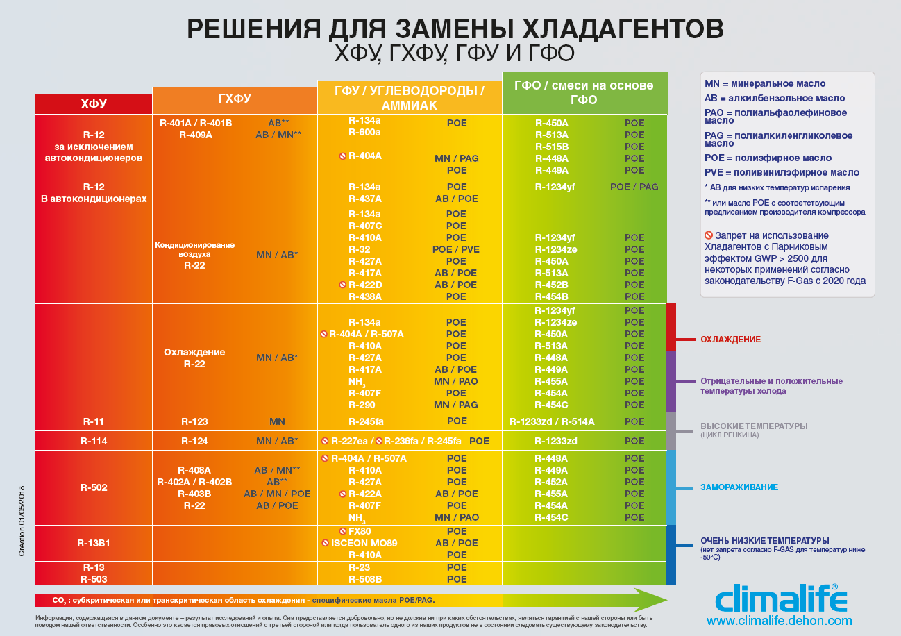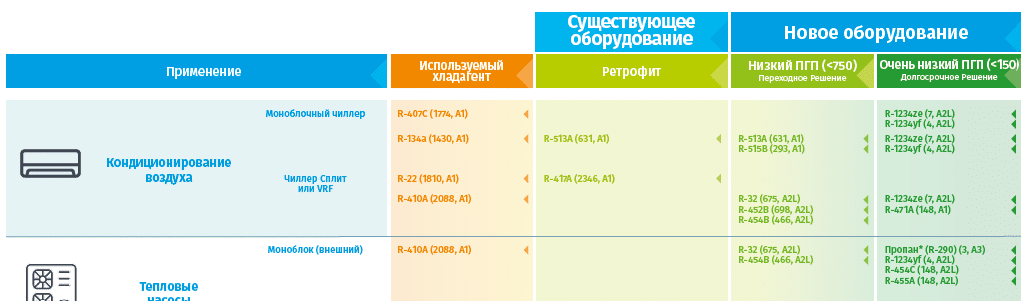 Чтобы помочь вам в выборе хладагентов с низким ПГП, предлагаемых для нового и существующего оборудования, компания Climalife обновила свою таблицу замены.